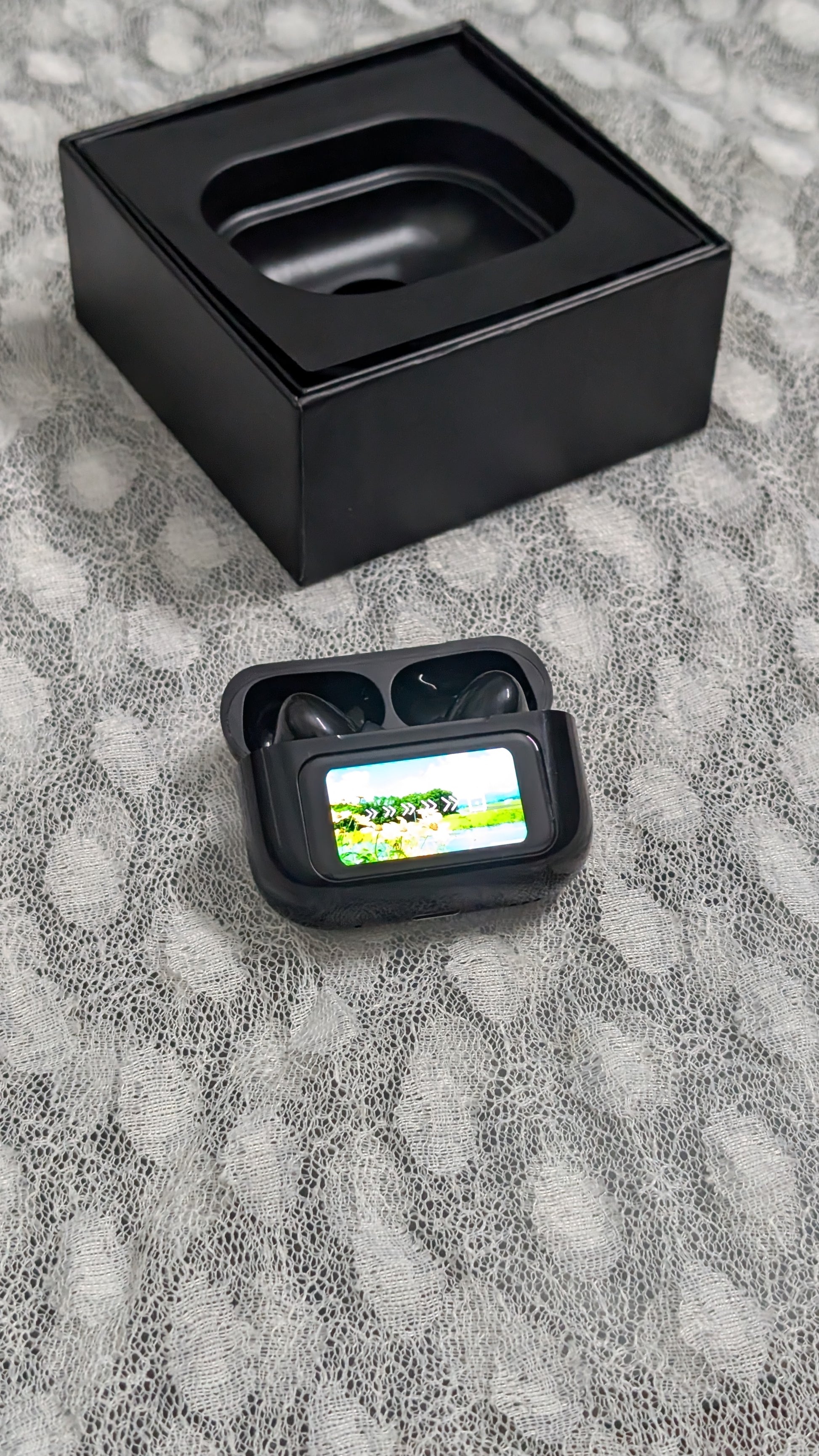 The innovative charging case features a built-in LED display screen, showing real-time visuals, battery status, and smart animations—making it both functional and stylish.