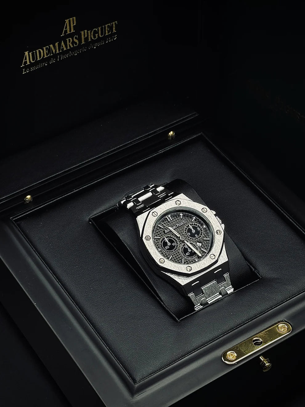 Introducing the Audemars Piguet Royal Oak Copy, a stunning replica with impeccable attention to detail. This watch features a substantial weight and a high-quality chain strap, delivering a luxurious feel on the wrist. It includes a functional date display, adding to its practicality. For packaging options, you can choose a premium large box for an additional charge, or opt for the complimentary Subhan's store packing. This original like copy offers the look and feel of true luxury at an accessible price.
