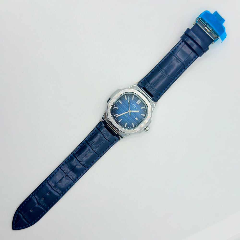 Add a touch of class to your wrist with the Marvin Blue Quartz Watch, a stunning fusion of modern design and timeless sophistication. Featuring a deep blue textured dial paired with a polished silver stainless-steel case, this watch delivers elegance that stands out effortlessly. The premium blue crocodile-pattern leather strap ensures both comfort and durability, making it perfect for everyday wear or formal occasions.