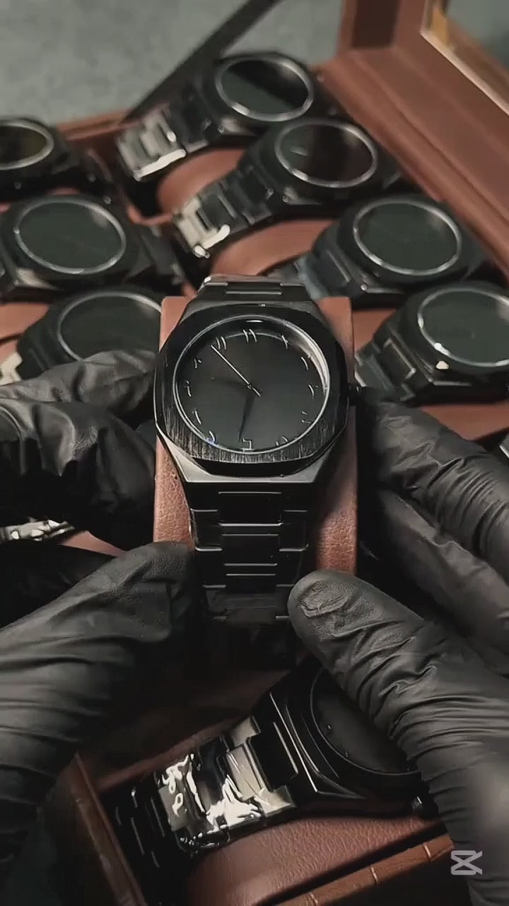 Elevate your style with this Luxury Black Metallic Arabic Aura Watch, designed for those who appreciate elegance with a modern edge. Crafted with a sleek black stainless-steel body and matching strap, this timepiece showcases a minimalist dial featuring Arabic numeral markers for a distinctive cultural touch. The brushed metallic finish adds sophistication, while the lightweight yet durable design ensures all-day comfort.